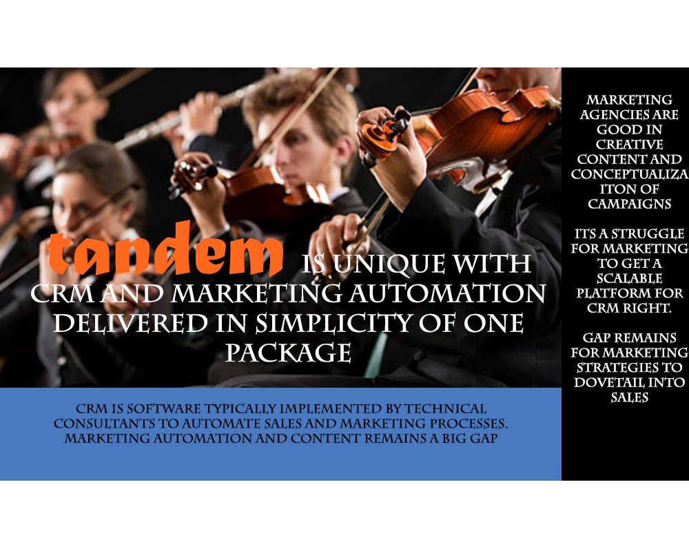 TANDEM from CrossRoadsBrands offers small and mid size businesses to take control of their Customer 360 degree insight. Account, Contact, Leads, Opportunities, Campaigns, Invoicing, Loyalty programs and much more. We can develop custom extensions to make it just one solution for a multi channel customer interaction. This coupled with Digital Marketing services makes it aend to end unique value proposition
